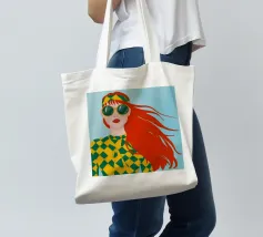 Questo vivace ritratto pop art presenta una rossa sicura di sé che indossa audaci occhiali verdi da gatta e un dolcevita giallo. Il mix di elementi retrò e moderni crea una divertente dichiarazione di intelligenza, stile e impavida individualità.