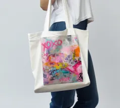 Questa vibrante arte digitale astratta combina colori brillanti e texture glitterate ispirate a motivi botanici. Le strisce orizzontali in rosa, arancione, blu e verde portano nuova energia in ogni spazio abitativo e celebrano la bellezza della natura colorata.