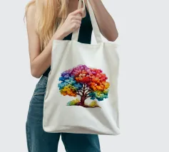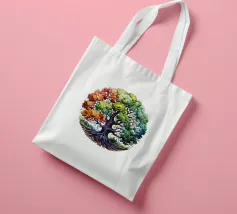 In superficie, un gruppo di alberi stilizzati esplode di colori, con le loro chiome che formano sfere di blu, arancione e giallo vibranti, alcune delle quali sono giocosamente divise in due metà contrastanti. Questo gioioso spettacolo di colori è rispecchiato da un'intricata rete di radici rosso intenso sotto la superficie, che simboleggia la forza nascosta e la connessione fondamentale che sostiene la vita. Le sfere colorate sparse aggiungono un'atmosfera stravagante ed energica, evocando un senso di meraviglia e di crescita. Perfetto per aggiungere un tocco di creatività e armonia naturale a qualsiasi spazio, questo pezzo celebra sia l'individualità che l'unità.