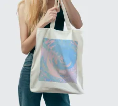 Due forme dai contorni fusi si fronteggiano, come se levitassero. I loro colori cangianti ondeggiano su uno sfondo color lavanda, creando un effetto calmo e ipnotico. L'immagine evoca un dialogo silenzioso tra due entità astratte, vicine ma separate, in uno spazio fluttuante.