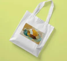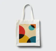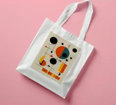 L'opera d'arte presenta una disposizione dinamica di forme geometriche dai colori vivaci. Cerchi, rettangoli e linee si intrecciano, creando un senso di movimento ed equilibrio.