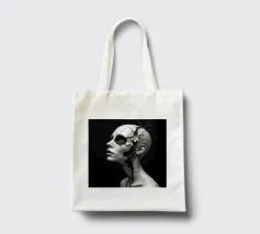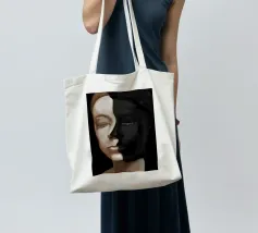 Un'opera d'arte moderna ed espressiva che mostra una figura femminile di profilo, metà umana e metà pietra. Le sottili transizioni tra pelle e struttura simboleggiano profondità emotiva, fragilità e forza allo stesso tempo. La combinazione di colori neutri, beige e grigi, conferisce all'immagine calma ed eleganza, perfetta per ambienti moderni, minimalisti e profondi.