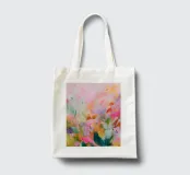 Il motivo mostra una composizione floreale dinamica e astratta, dai colori pastello decisi ma delicati. Pennellate di rosa, arancione e verde formano una moderna interpretazione di un prato fiorito estivo. La pittura conferisce all'opera profondità, leggerezza e un'aura naturale e vivace.