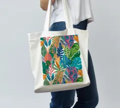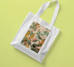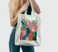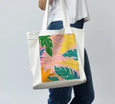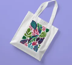 Questa vibrante opera d'arte presenta una composizione dinamica di foglie tropicali in colori audaci e contrastanti. L'opera presenta un mix di fogliame verde intenso, rosa tenue e arancione brillante, con intricati motivi di venature che aggiungono consistenza e dettagli. Il gioco di toni caldi e freddi crea un'atmosfera vivace ed energica, mentre lo sfondo pulito color crema permette alle foglie di risaltare in modo evidente. L'approccio grafico e stilizzato conferisce all'opera un'estetica moderna e giocosa, evocando la bellezza lussureggiante della natura in un design contemporaneo.