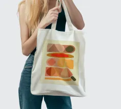 Composizione minimalista di metà secolo con forme geometriche semplici e colori accoglienti, tra cui arancione, marrone, beige e verde acqua, che evocano l'evoluzione del sole in una luminosa giornata autunnale. Con i suoi toni caldi, quest'opera d'arte retrò è in grado di ravvivare qualsiasi ambiente. Una scelta perfetta per case, uffici e hotel. Parte di un duo.