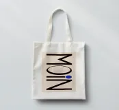 Questo moderno design ispirato alla Bauhaus presenta la parola tedesca MOIN scritta verticalmente in lettere nere con un giocoso punto blu sulla i. La sua geometria pulita e la composizione minimalista lo rendono un pezzo perfetto per gli amanti dell'arte murale contemporanea e tipografica. Un'aggiunta ideale a una galleria da parete con toni blu.