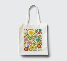 Una bella macchia di fiori selvatici stilizzati e stravaganti è illustrata in un affascinante stile ispirato all'arte popolare, con un delizioso mix di colori e forme che irradiano gioia e bellezza naturale.