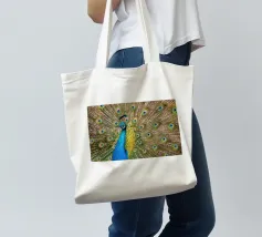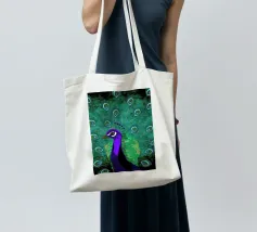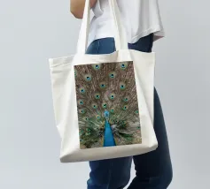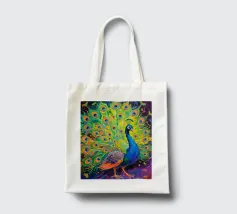 Una fotografia straordinaria che cattura un pavone in un'esibizione completa e ipnotica. I ricchi toni gioiello delle piume e l'imponenza della coda ne fanno un'opera d'arte di grande impatto.