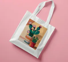 Piccolo cactus in vaso a forma di cubo con pittura fauvismo stile arte