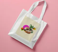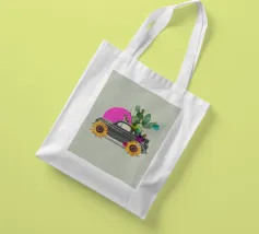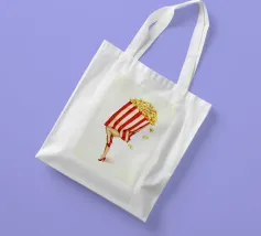 Un collage giocoso e retrò che fonde l'estetica vintage con la cultura pop: una ragazza degli anni '60 in bianco e nero con occhiali tondi e sciarpa si trova di fronte a un cactus mediterraneo, un cono gigante di patatine fritte, una Vespa nera e una ciambella rosa con zuccherini colorati. La composizione è arricchita da audaci cerchi di colore in stile grafico. Perfetta per gli spazi creativi, le cucine moderne o gli interni degli amanti della pop art.