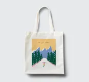 "Ski you later" - un gioco di parole tipografico incontra una colorata illustrazione invernale. Uno sciatore scivola rilassato lungo una pista bianca, circondato da abeti scuri e montagne viola. Il cielo si illumina di un caldo giallo pastello e conferisce alla scena un accenno di tramonto. Questo poster combina gli sport invernali con l'umorismo e una varietà di colori: un allegro richiamo per tutti gli amanti dello sci e della montagna.
