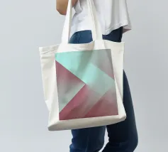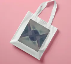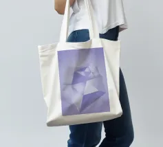 Una vibrante composizione astratta presenta una miscela di tonalità viola e blu, formando forme geometriche nitide e transizioni fluide che creano profondità e movimento.