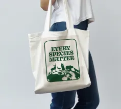 La forma di un teschio incorpora vari simboli verdi come icone di riciclaggio, cuori e bidoni della spazzatura, sottolineando i temi ambientali. Gli slogan "The Scariest Thing" (La cosa più spaventosa) e "There is No Planet B" (Non c'è un pianeta B) evidenziano un forte messaggio di consapevolezza ambientale.