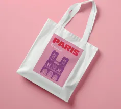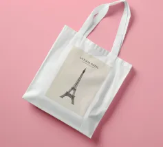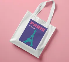 Il famoso simbolo di Parigi, la Torre Eiffel, in un design molto moderno. Lavoro artistico con elementi tipografici.