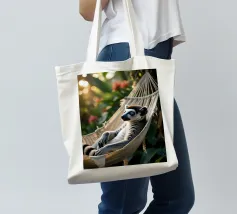 Questa stampa fa parte della serie "Jungle Hammock Tales" - relax estivo con una strizzatina d'occhio.