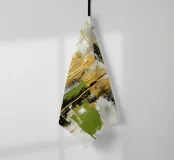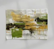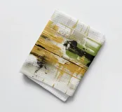 Quest'opera d'arte è una composizione astratta in formato panoramico, caratterizzata da un mix dinamico di texture, colori e forme geometriche. La texture è ricca, con pennellate visibili e strati di colore che creano un'atmosfera speciale. Il gioco di toni verdi e terrosi con accenti metallici conferisce all'opera un'energia armoniosa e vibrante.