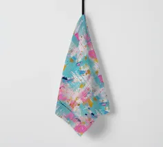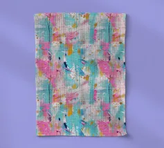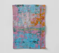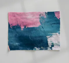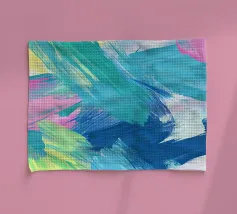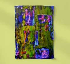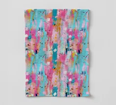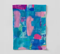 Le vibranti tonalità di rosa, blu e turchese si fondono in un vivace disegno astratto, creando un senso di movimento ed energia. I tratti audaci e i colori stratificati evocano un'atmosfera dinamica ed espressiva.