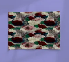 Un ricco motivo astratto con forme organiche e superfici strutturate in colori caldi come verde acqua, rosso ruggine, giallo oro, corallo, beige e blu su sfondo nero. Perfetto per gli amanti dell'arte astratta, gli appassionati di texture, i fan dei colori caldi e tutti coloro che apprezzano le forme organiche con dettagli artistici e la raffinatezza della terra.