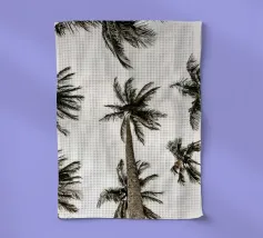 Lasciatevi trasportare dall'eleganza e dalla maestosità di queste palme imponenti. Mentre le loro cime formano un disegno circolare contro un cielo morbido e pastello, sentite la pace e la calma che offre la natura. Questa angolazione insolita non solo mette in risalto l'altezza degli alberi, ma anche la loro bellezza senza tempo.