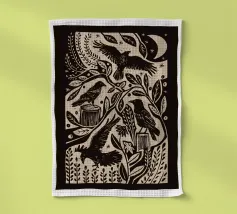 Questa silhouette mostra un albero nodoso e consumato dalle intemperie, con fili di muschio pendenti su cui sono appollaiati diversi corvi. Due lanterne pendono dai rami, mentre i pipistrelli volano sullo sfondo. Il disegno trasmette un'atmosfera misteriosa e un po' cupa che ricorda vecchie leggende o mondi fantastici. Ideale per gli appassionati di stile gotico, estetica fiabesca o decorazioni di Halloween. Il contrasto minimalista tra il nero e lo sfondo chiaro aumenta l'effetto drammatico.