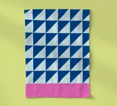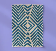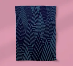 Questa immagine presenta un motivo geometrico composto da forme triangolari alternate, ciascuna riempita da linee orizzontali disegnate a mano.I triangoli sono disposti in un formato a griglia, creando un design ripetitivo e strutturato.La tavolozza dei colori offre uno sfondo morbido e viola con linee blu scuro all'interno dei triangoli.L'effetto disegnato a mano aggiunge una sensazione dinamica e strutturata al motivo altrimenti nitido e angolare.Questo design moderno è ideale per progetti grafici, tessuti o sfondi digitali e offre una sensazione dinamica e strutturata.
