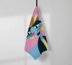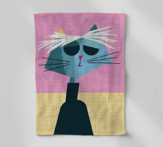 Una vivace illustrazione di gatti ispirata alla pop-art, con un sorprendente felino blu dalla finitura astratta e strutturata. Su uno sfondo rosa, con una vivace stampa di labbra, questo disegno emana fascino e un'estetica moderna. Perfetto per gli amanti dei gatti e per chi apprezza l'arte colorata e accattivante!