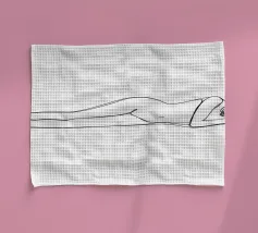 Illustrazione minimalista al tratto di una figura femminile reclinata, che cattura un senso di rilassamento e agio. I cerchi morbidi e dai toni terrosi aggiungono calore ed equilibrio alla composizione. Perfetto per chi ama un arredamento semplice, moderno ed elegante.