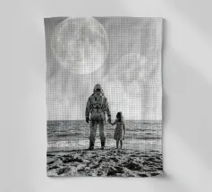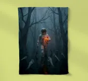 Questa opera d'arte oscura e cinematografica fonde fantascienza e orrore in una potente scena surreale. Un astronauta attraversa una foresta nebbiosa e infestata, circondato da mani inquietanti che emergono dall'acqua sottostante. Nella sua mano, un cuore incandescente proietta una luce calda contro la fredda atmosfera blu, simboleggiando la speranza, l'umanità e la sopravvivenza nell'ignoto. L'illuminazione tetra, gli alberi nebbiosi e il contrasto drammatico creano una storia visiva intensa ed emozionante. Perfetto per gli appassionati di dark fantasy, space art, temi psicologici e decorazioni murali d'atmosfera, questo disegno aggiunge mistero e profondità.