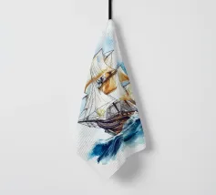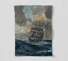 Un veliero storico fende con forza le onde blu profondo sotto un cielo vivido. La luce del sole al tramonto dona alla vela riflessi caldi e fa apparire l'imbarcazione maestosa. Questo poster cattura in modo impressionante il fascino della navigazione a vela e la libertà del mare aperto - un punto di forza per gli interni marittimi.