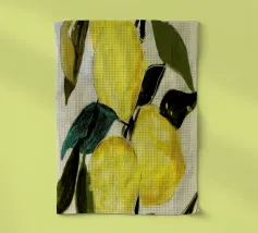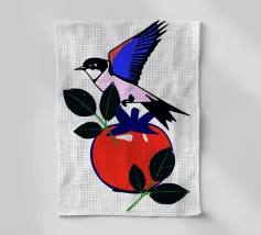 Un uccello è appollaiato su un ramo con grappoli d'uva viola circondati da foglie verdi. I colori vivaci dell'uva e delle foglie creano un contrasto sorprendente.