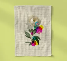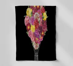 Stravagante arte del collage con un bouquet di rose, peonie e stelle glitterate dorate. Un tocco gioioso e surreale di design a tema floreale e alimentare.