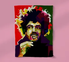 Un vibrante ritratto in stile WPAP di Bob Ross, l'amato pittore noto per la sua voce calma e i suoi "alberelli felici". Questa opera d'arte reimmagina Ross con audaci forme geometriche e colori vivaci, catturando i suoi iconici capelli afro, il suo sorriso sereno e il suo spirito artistico in una moderna estetica pop-art.