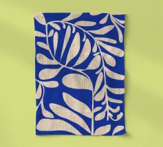 Motivo bohémien di botanica astratta in blu e bianco