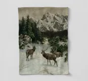 Un suggestivo motivo invernale: tre cervi si ergono maestosi in un paesaggio montano innevato, con abeti e cime sullo sfondo. I colori naturali e l'atmosfera tranquilla rendono questo disegno perfetto per gli amanti della natura e degli animali. Che si tratti di un murale, di un cuscino, di una tazza o di un poster, questo motivo porta il romanticismo invernale della fauna selvatica, l'eleganza e la tranquillità in ogni casa.