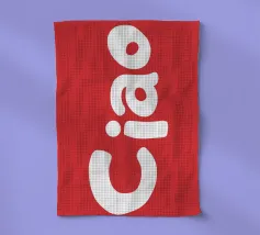 ciao text design, augurio grafico italiano, tipografia rossa in grassetto, lettering moderno e minimalista, parola italiana elegante, testo grafico d'arte