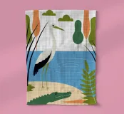 Scoprite la bellezza della natura con un tocco di umorismo in questa opera d'arte con una cicogna e un coccodrillo come amici. I colori vivaci e i disegni unici creano un'atmosfera fresca e divertente.