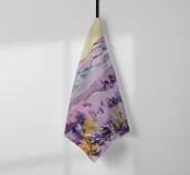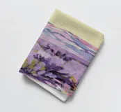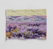 Colline ondulate ricoperte di una soffice e vaporosa lavanda si estendono verso una lontana e pallida catena montuosa. I colori delicati e la messa a fuoco morbida creano un paesaggio sognante, tranquillo e suggestivo.