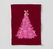Un'affascinante illustrazione di un albero di Natale rosa ornato da graziosi fiocchi, perfetto per gli amanti delle civette e per gli appassionati di decorazioni vintage.