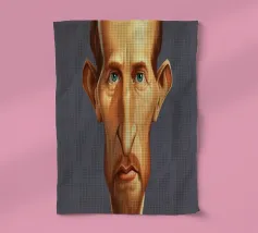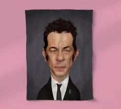 Illustrazione caricaturale umoristica del noto attore inglese Daniel Craig. Una delle caricature realizzate per la serie Celebrity Sunday, in cui un personaggio famoso viene ritratto nell'arco di una giornata. L'idea è di mostrarli come in una fototessera per avere coerenza.