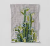 Questa delicata opera d'arte raffigura cactus verdi con fiori azzurri, dipinti in tenui colori pastello. La combinazione di toni morbidi di beige e verde conferisce al motivo un'atmosfera calda e naturale. Ispirato alla botanica del deserto, il risultato è un quadro vegetale minimalista con una leggerezza estiva.