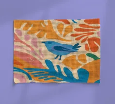 Questo incantevole disegno con uccelli colorati ed elementi floreali in blu, rosa, arancione e giallo dona un'allegra leggerezza a qualsiasi stanza. L'armoniosa combinazione di motivi naturali e colori vivaci lo rende un vero e proprio richiamo visivo. Perfetto per tazze, cuscini, murales o magliette: una scelta meravigliosa per chiunque voglia aggiungere un tocco di natura e creatività alla propria vita quotidiana.