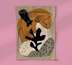 Un design artistico con foglie di monstera minimaliste in contrasto bianco e nero, abbinate a un caldo semicerchio in terracotta. L'armoniosa fusione di forme naturali e linee moderne fa di questo motivo il pezzo forte di ogni casa. La palette di colori ridotta e gli elementi grafici creano un look contemporaneo ed elegante. Perfetto per opere d'arte da parete, cuscini, tazze o cover per cellulari. Questo disegno conferisce un tocco boho chic e botanico al vostro spazio abitativo o lavorativo ed è ideale anche come regalo per gli amanti della natura e del design.