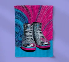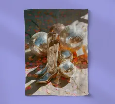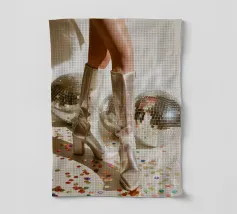 Entrate nella pista da ballo con questo poster digitale abbagliante che raffigura un paio di gambe con tacchi alti argentati e scintillanti, in equilibrio sicuro su una palla da discoteca riflettente. La scena dinamica si staglia su uno sfondo a scacchiera grigio e bianco deformato, creando un'estetica pop art retrò vibrante e surreale. Questo pezzo accattivante è perfetto per aggiungere glamour, atmosfera di festa e un tocco di nostalgia a qualsiasi salotto, camera da letto o area di intrattenimento. Realizzata con una notevole risoluzione di 7000x5000 pixel e 300 dpi, questa stampa digitale di qualità superiore assicura che ogni dettaglio scintillante e ogni audace motivo