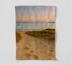 Questo motivo cattura la bellezza idilliaca di un paesaggio di dune assolate che si estende lungo un'ampia spiaggia sabbiosa. I colori caldi dell'erba e della spiaggia che si incurva dolcemente creano un'atmosfera rilassante che trasmette la sensazione di un rifugio tranquillo. Ideale come murale, cover per cellulare, cuscino o tazza per aggiungere un tocco fresco e naturale alla stanza. Perfetto per gli amanti dei motivi da spiaggia, del design scandinavo e dei momenti di pace nella natura.