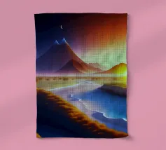 Un terreno da sogno cucito dal tempo e dal mito: All At Once fonde tre paesaggi iconici in un mondo surreale e senza luogo. Il tranquillo specchio del Monte Fuji di Kashiwabara (1896, Kazumasa Ogawa) si innalza nella silhouette delle Piramidi di El-Geezeh di Frith del 1858, il tutto coronato dalle eteree dune di White Sands, nel Nuovo Messico, catturate dalla NASA. Insieme, queste scene dissolvono la geografia e la cronologia per evocare una tranquilla meraviglia cinematografica, dove vulcani e faraoni si incontrano davanti a dune simili a nuvole. Un portale per il muro e un pellegrinaggio per l'occhio.
