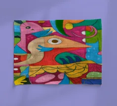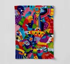 Un insieme di creature fantasiose raffigurate con tratti esagerati e motivi intricati. I colori e le texture dinamiche esaltano l'atmosfera giocosa.
