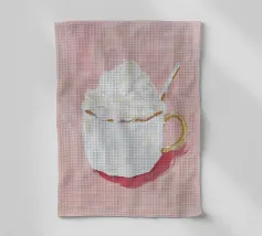 Un'illustrazione spiritosa, deliziosa e golosa di una tazza piena di cioccolata calda e panna montata. Il testo dice: "Non voglio innamorarmi, voglio innamorarmi della cioccolata".