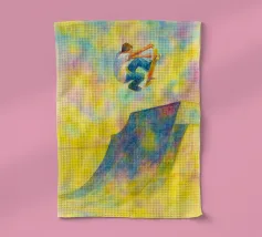Un'illustrazione dinamica e colorata in stile schizzo di una ragazza impavida in movimento su uno skateboard. Audaci linee di inchiostro incontrano vivaci schizzi di acquerello in rosa, verde, arancione e giallo, catturando l'energia, la libertà e lo spirito della gioventù. Lo sfondo minimalista contrasta splendidamente con il movimento espressivo della figura. Perfetto per interni moderni, camere di ragazzi, amanti dello skate o studi creativi alla ricerca di un tocco di colore e attitudine urbana.
