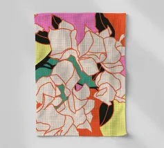 Questa vibrante arte digitale astratta combina colori brillanti e texture glitterate ispirate a motivi botanici. Le strisce orizzontali in rosa, arancione, blu e verde portano nuova energia in ogni spazio abitativo e celebrano la bellezza della natura colorata.
