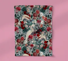 "I motivi e i disegni di Burcu Korkmazyurek si trasferiscono perfettamente dalle radici della moda alle stampe su tela. I suoi realistici motivi floreali e animali si integrano o contrastano con sfondi che vanno dal"